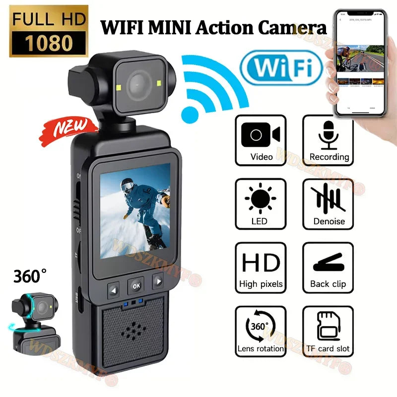 1080P Handheld Sports Pocket Camera HD Display 180° Rotatable WiFi Wireless Video Recorder Built-in Fill Light Motion Camera