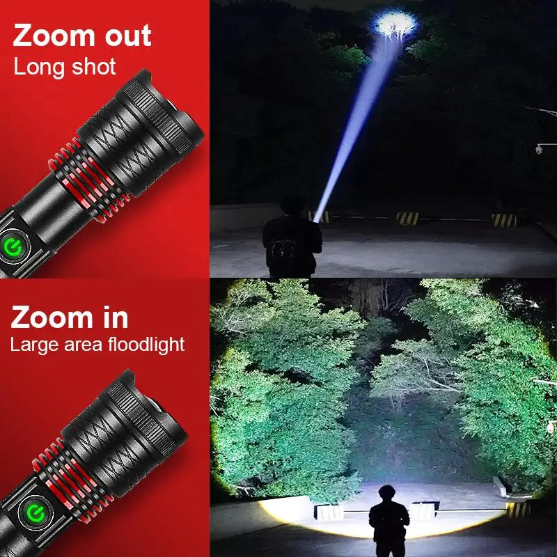 20000000LM Most Powerful LED Flashlight USB Rechargeable Lamp 900W LED Flashlights Super Bright Zoomable Torch Long Shot 4000M