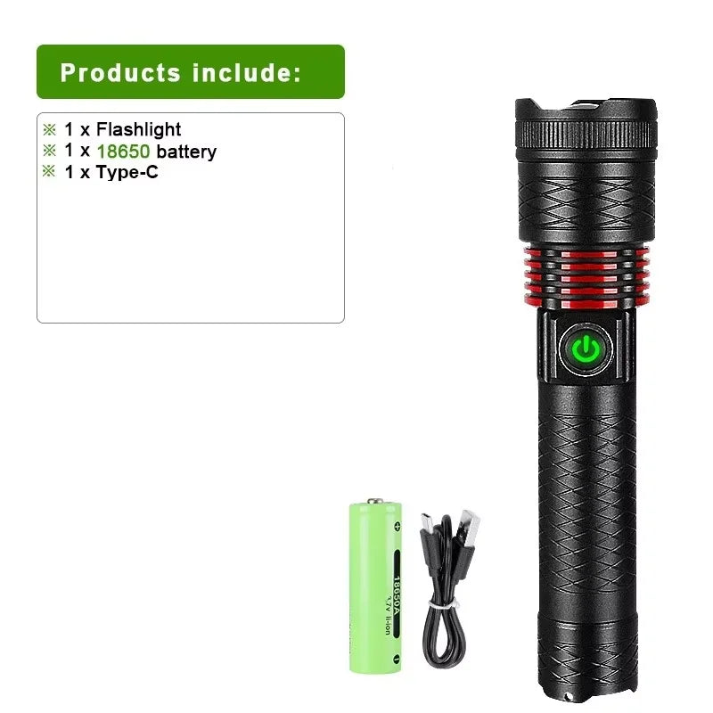 C-300W LED flashlight with 18650 battery and Type-C cahrge cable