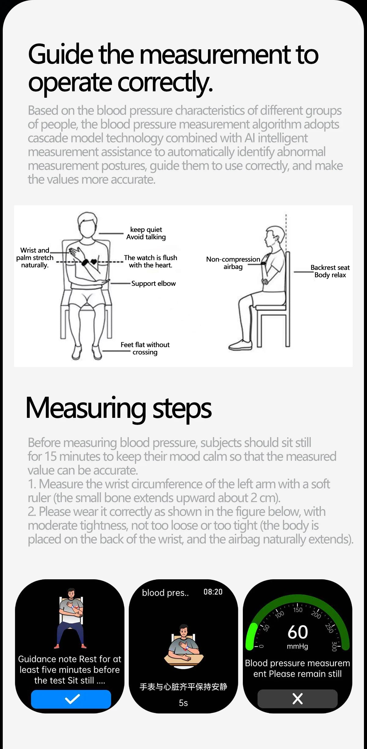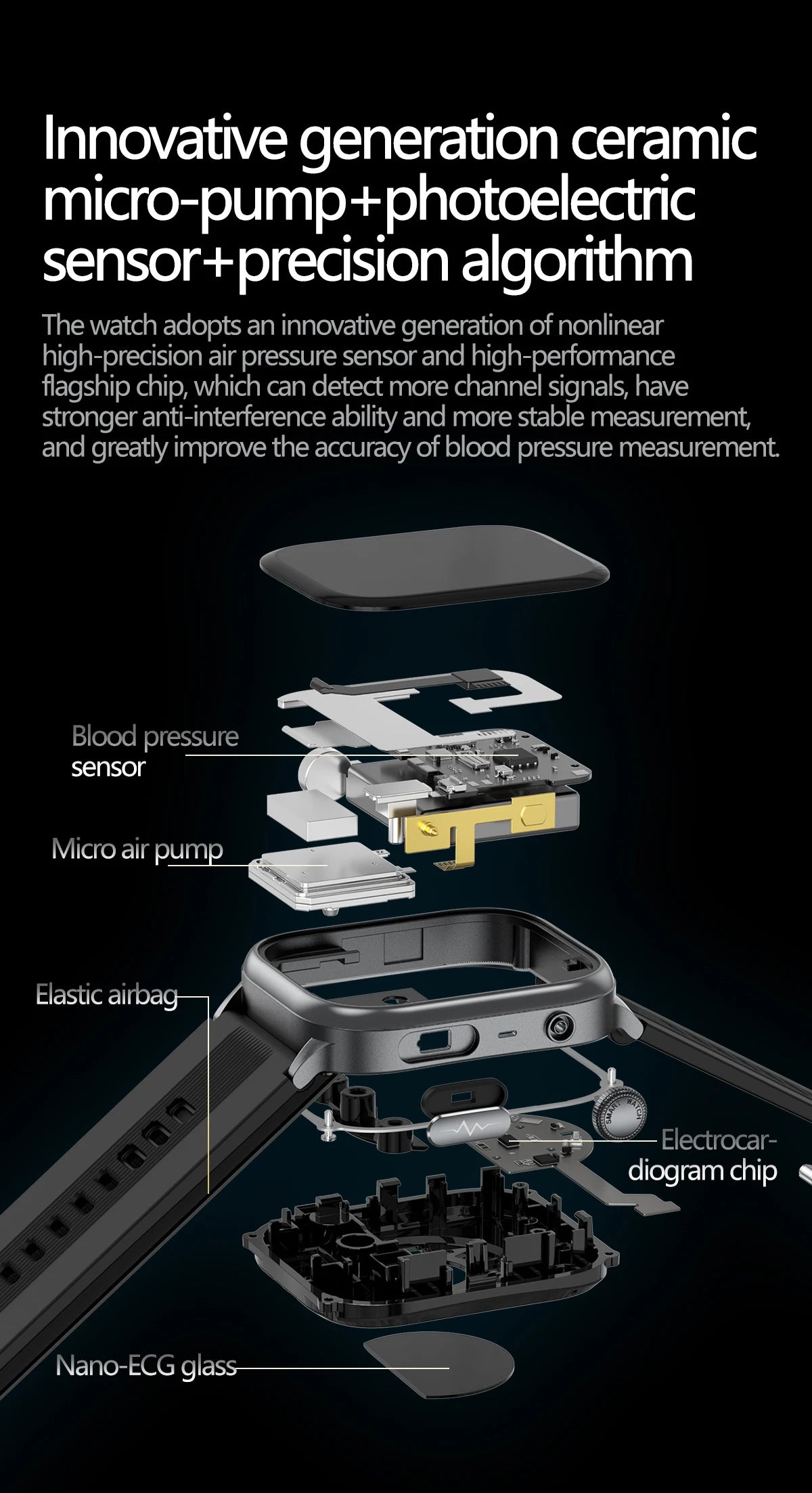 CPU Model: Air pump+airbag type precise true blood pressure Health ECG+PPG Smart