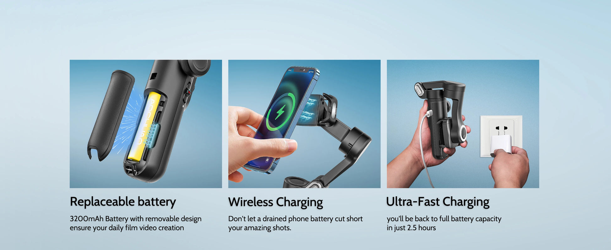 AOCHUAN Smart XPro Smartphone 3 Axis Gimbal Stabilizer For iPhone and Android Smartphone Shooting Video with Fill light Effects