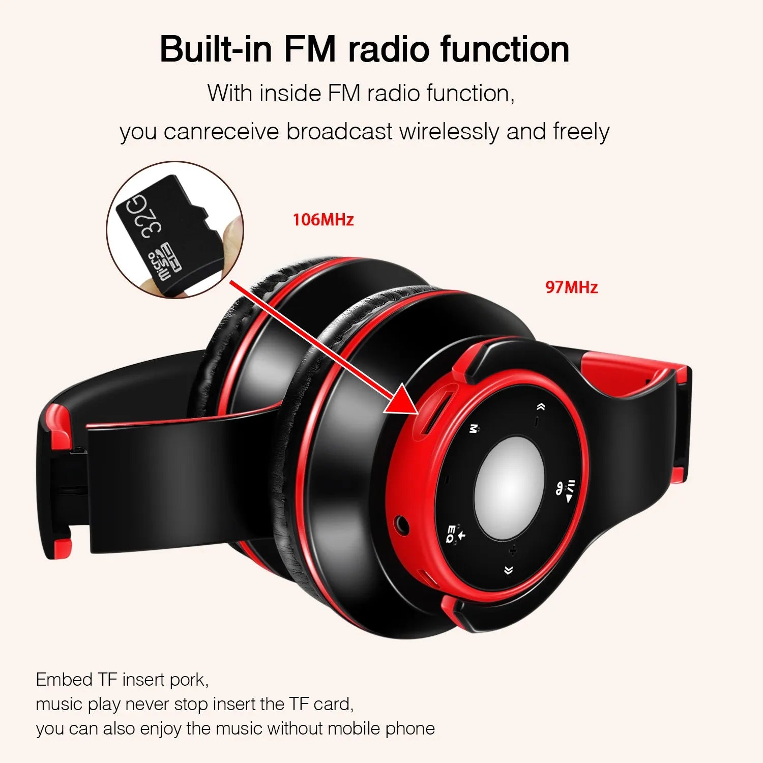 Colorful Stereo Audio Mp3 Bluetooth Headset Wireless Headphones Earphone Support SD Card with Mic Play 20 Hours
