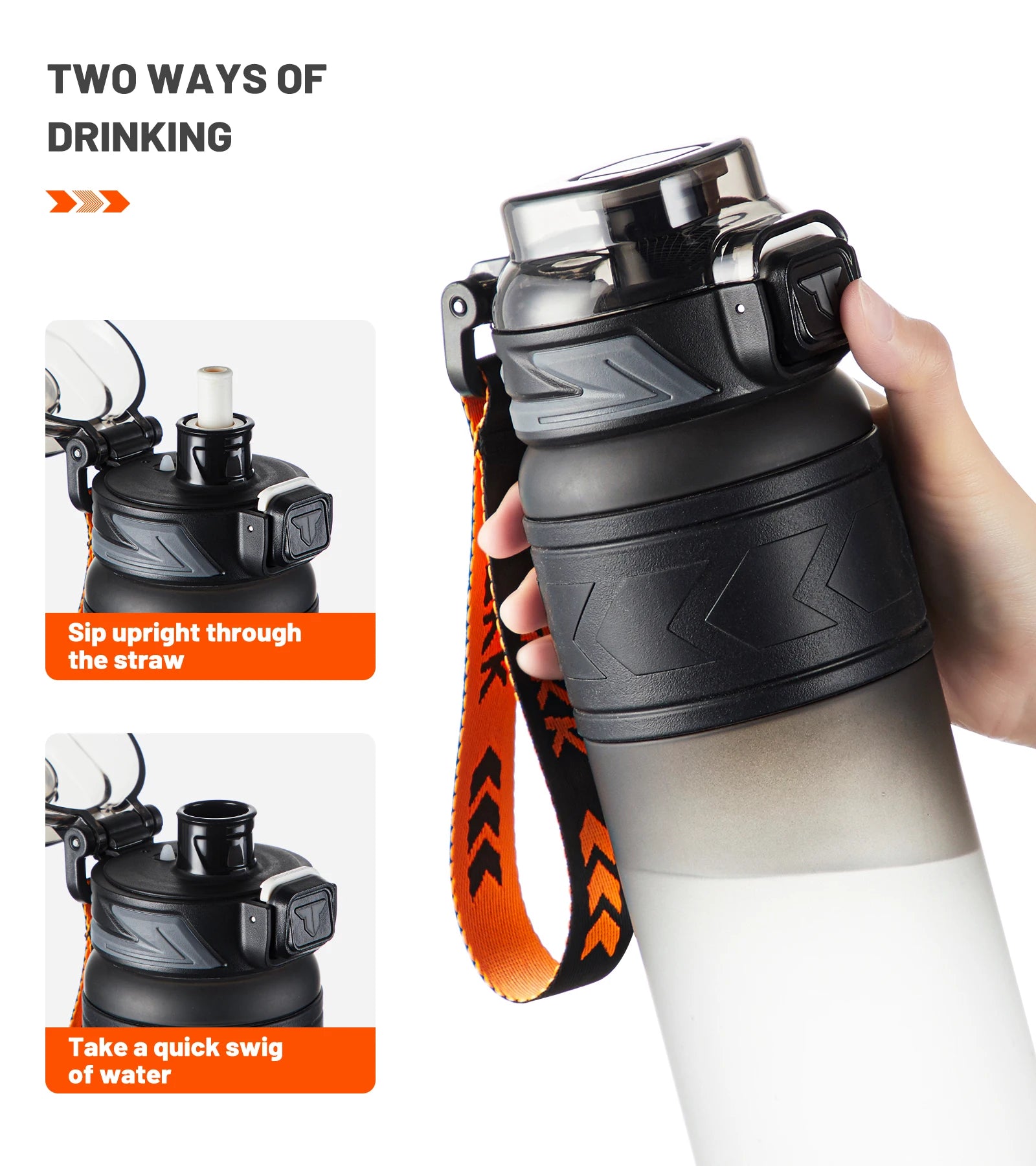 Custom Logo 1000ml Sports Tritan Water Bottle Gradient Color Design BPA-Free Lid Straw Safe Material for Running Travel Hiking