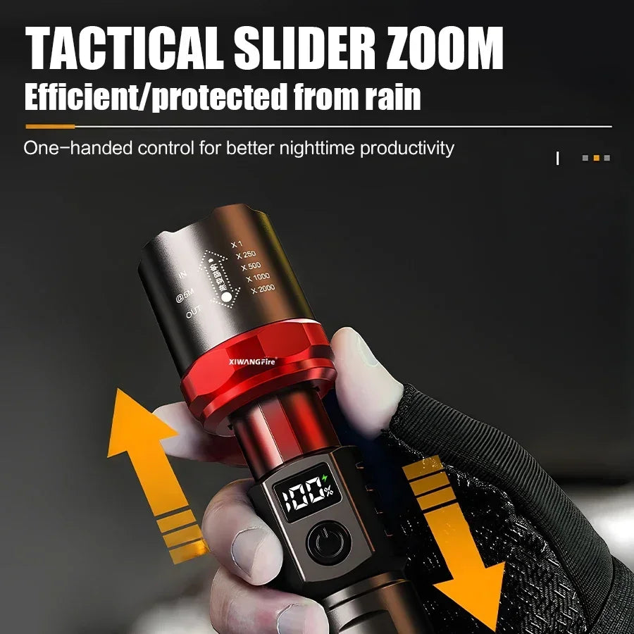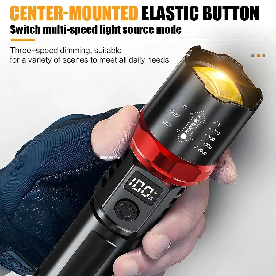 Heinast 1000LM Powerful LED Flashlight Display TYPE-C Rechargeable Light Telescopic Zoom Torch Outdoor Camping Fishing Lantern