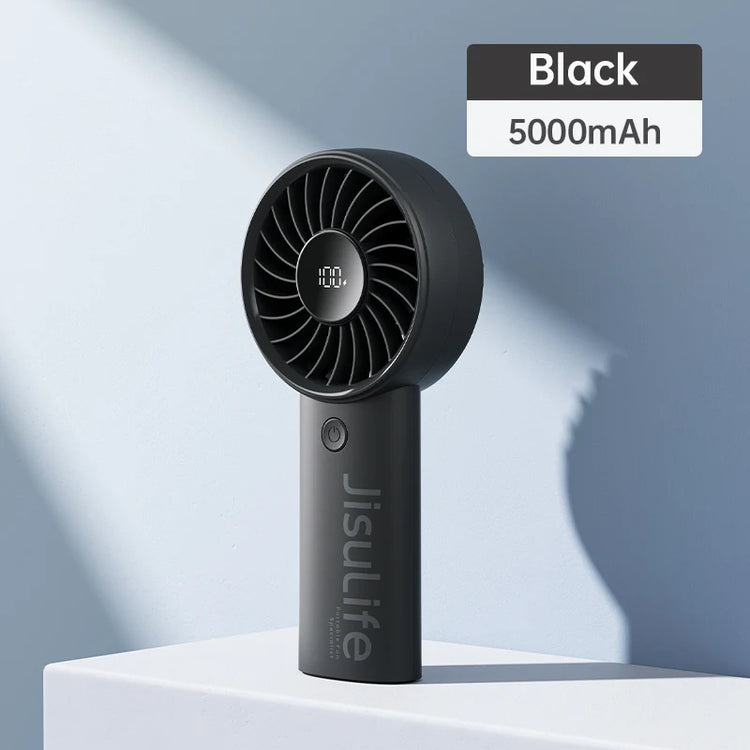 JISULIFE Handheld Fan,5 Levels of Strong Wind,Safety Lock,5000mAh Battery,LED Display,USB Rechargeable,Summer Personal Fan
