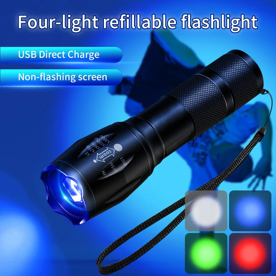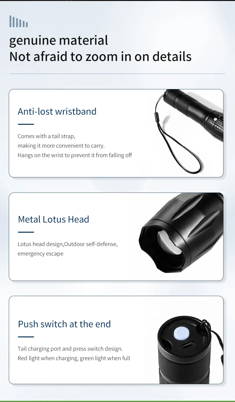 LED Aluminum Flashlight Outdoor Adventure Sports Emergency Flashlight Premium Black Color Changeable Light Compact and Portable