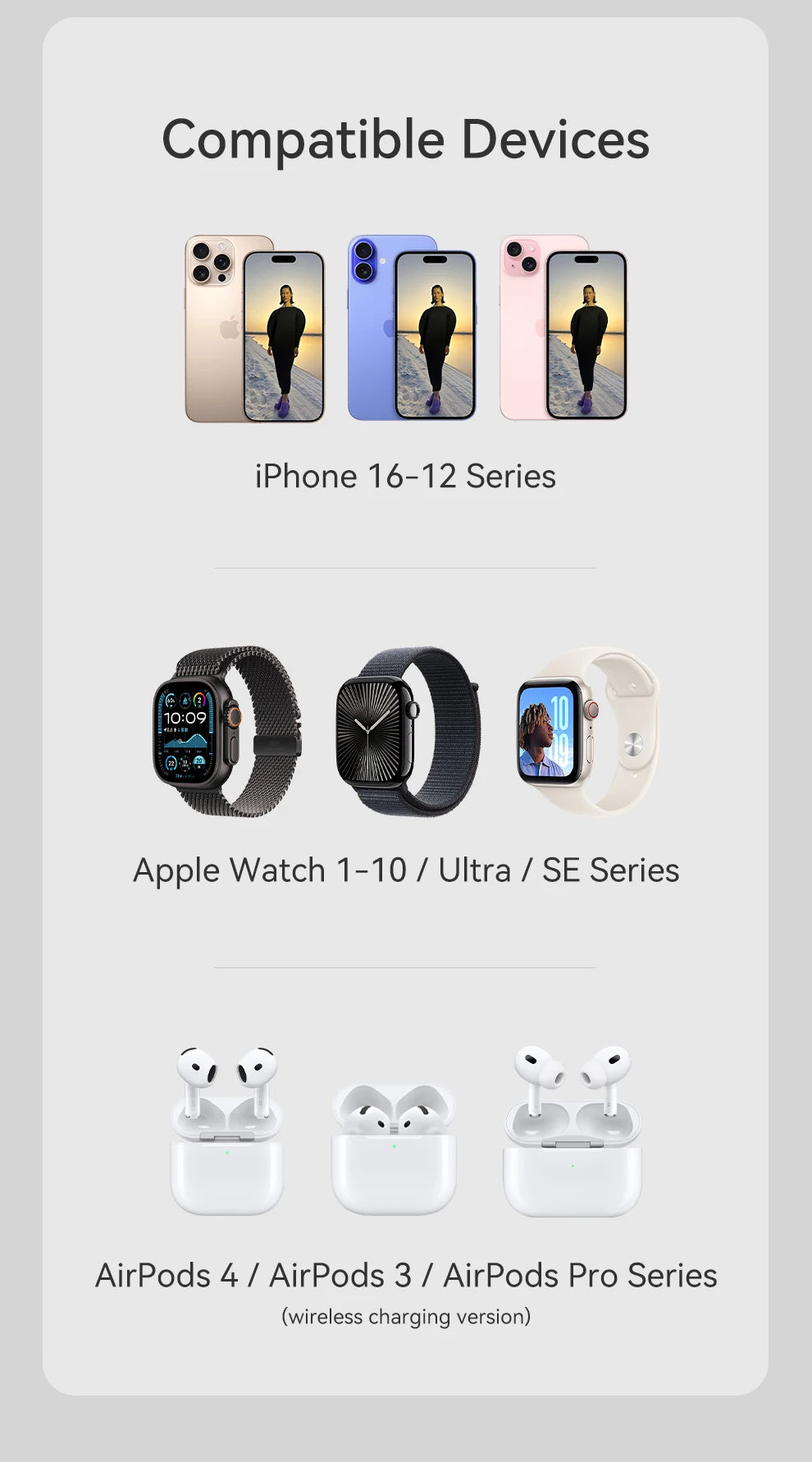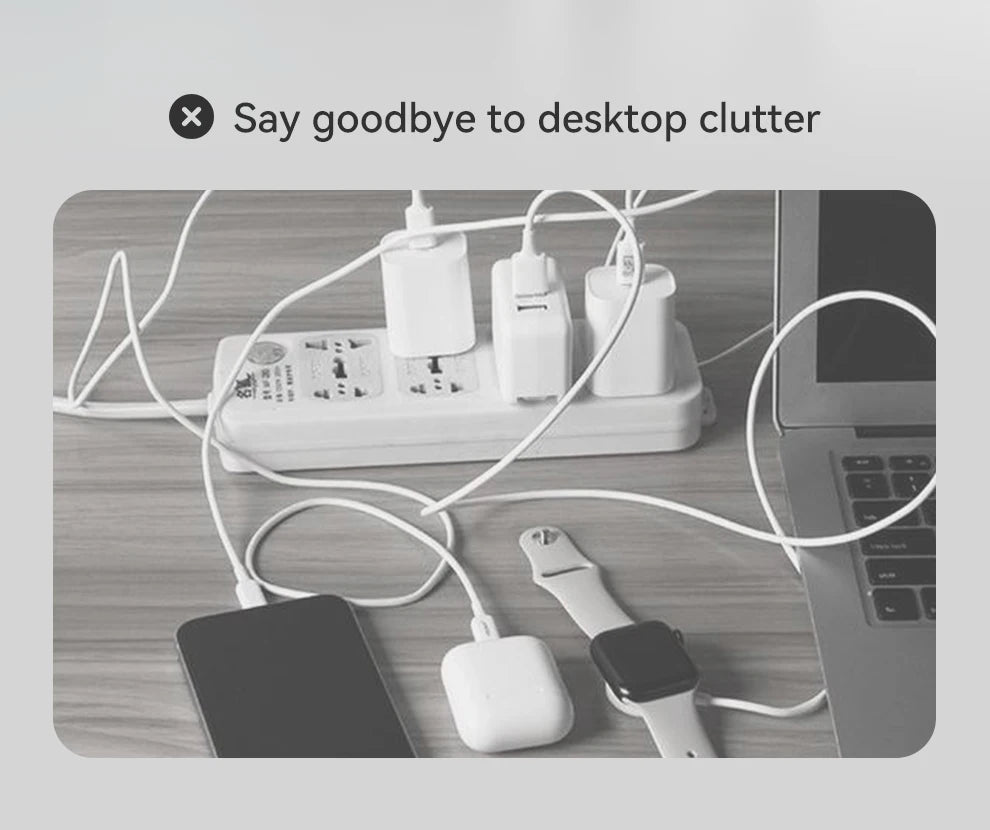 1. Three-in-one charging, can charge mobile phones, watches, and headphones at the same time, saying goodbye to cluttered desktops