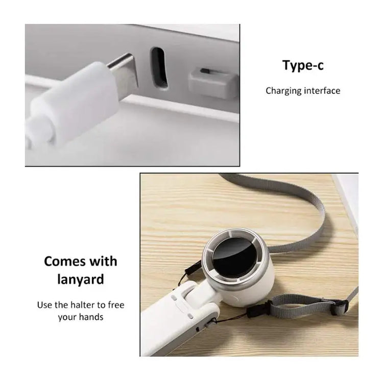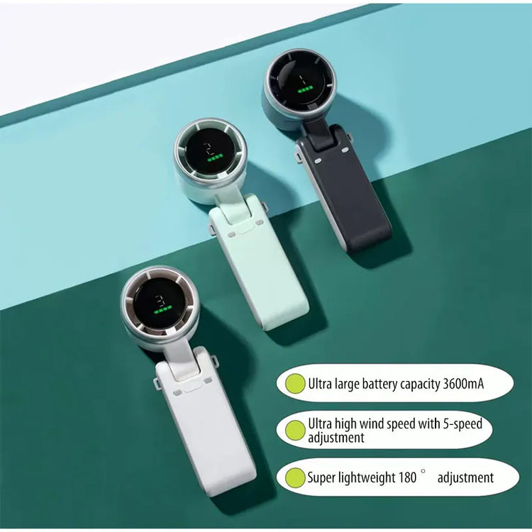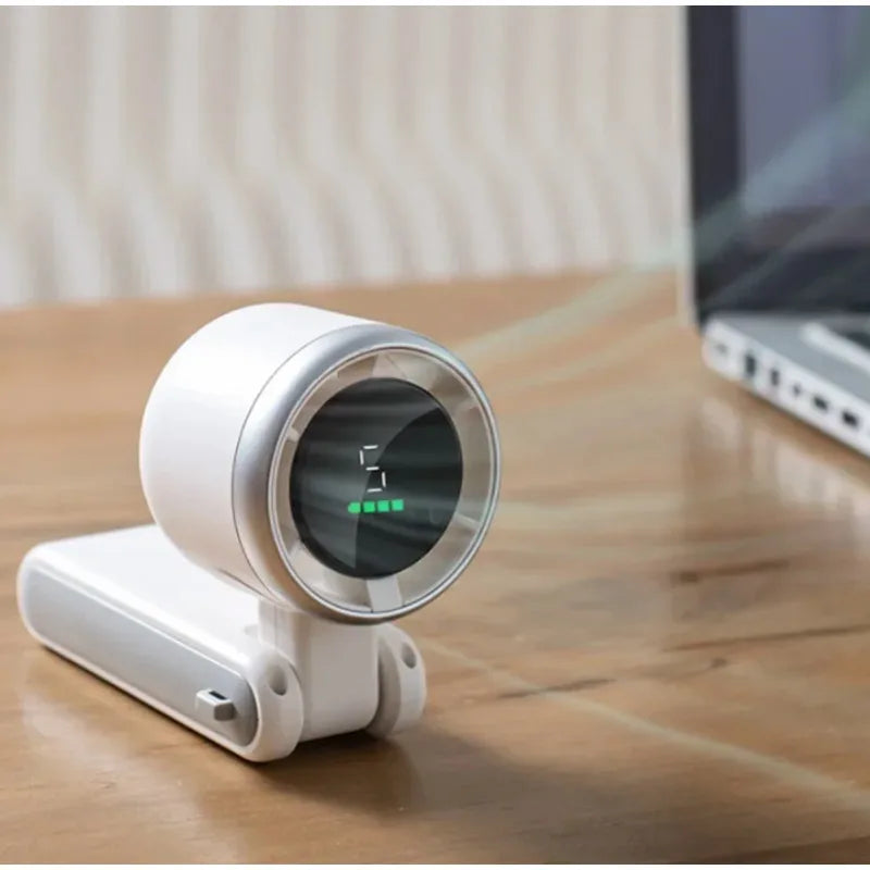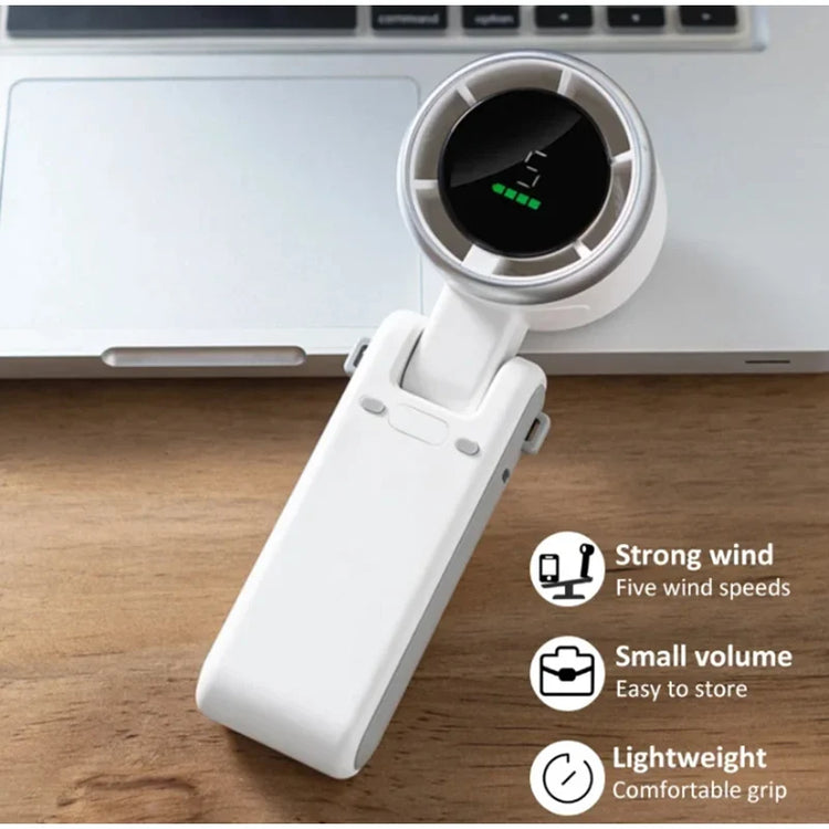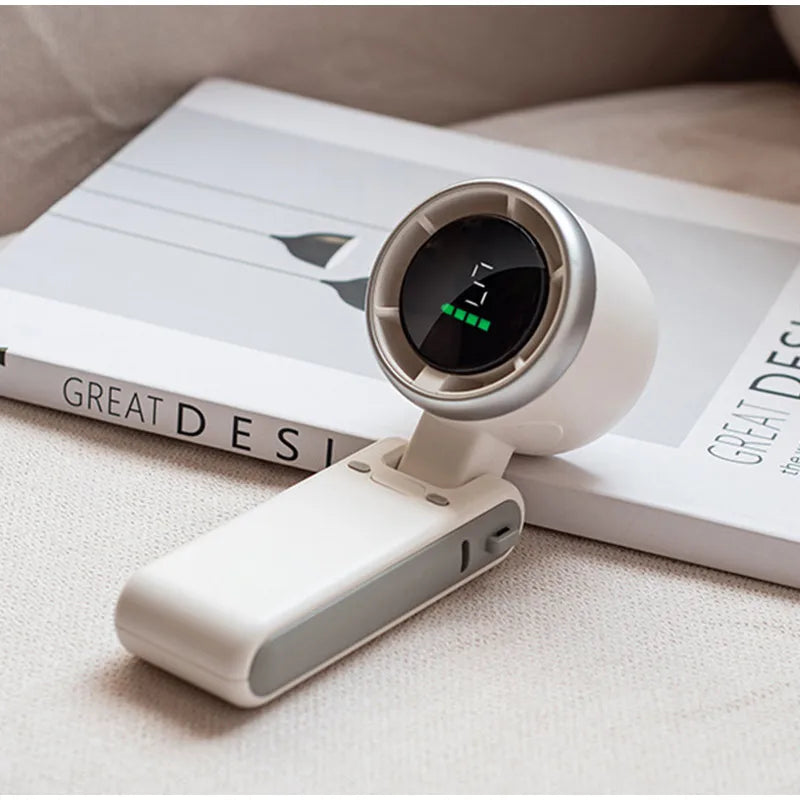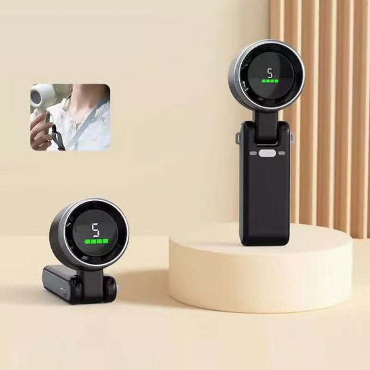 New Handheld Mini Fan Portable Neck Hanging Small Fan USB Rechargeable Fan LED Digital Display 180 Adjustable Desktop Mini Fan