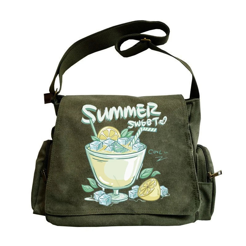 Retro Old Women's Bag Green Fresh Pattern Small Shoulder Large Capacity New Fashion Vintage Print Crossbody