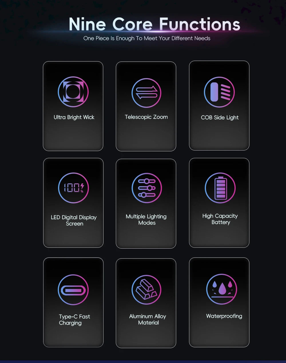Flashlight Type: Outdoor activities, camping, hiking, night running, repairs, emergency