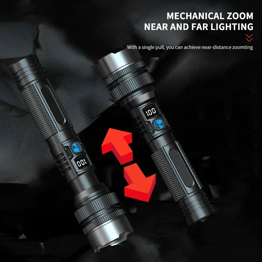 Super Bright LED Portable Flashlight USB Rechargeable Torch with Built-in Battery High Lumen Outdoor Waterproof Camping Lantern