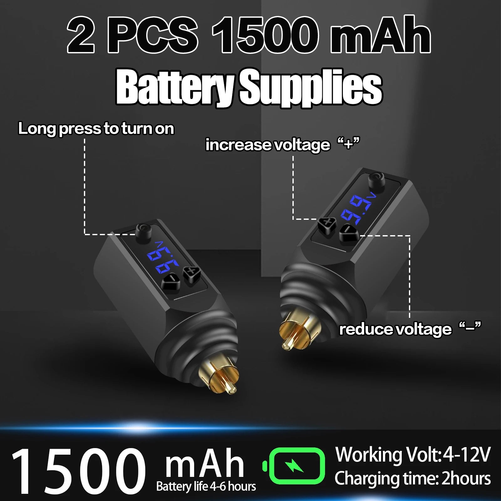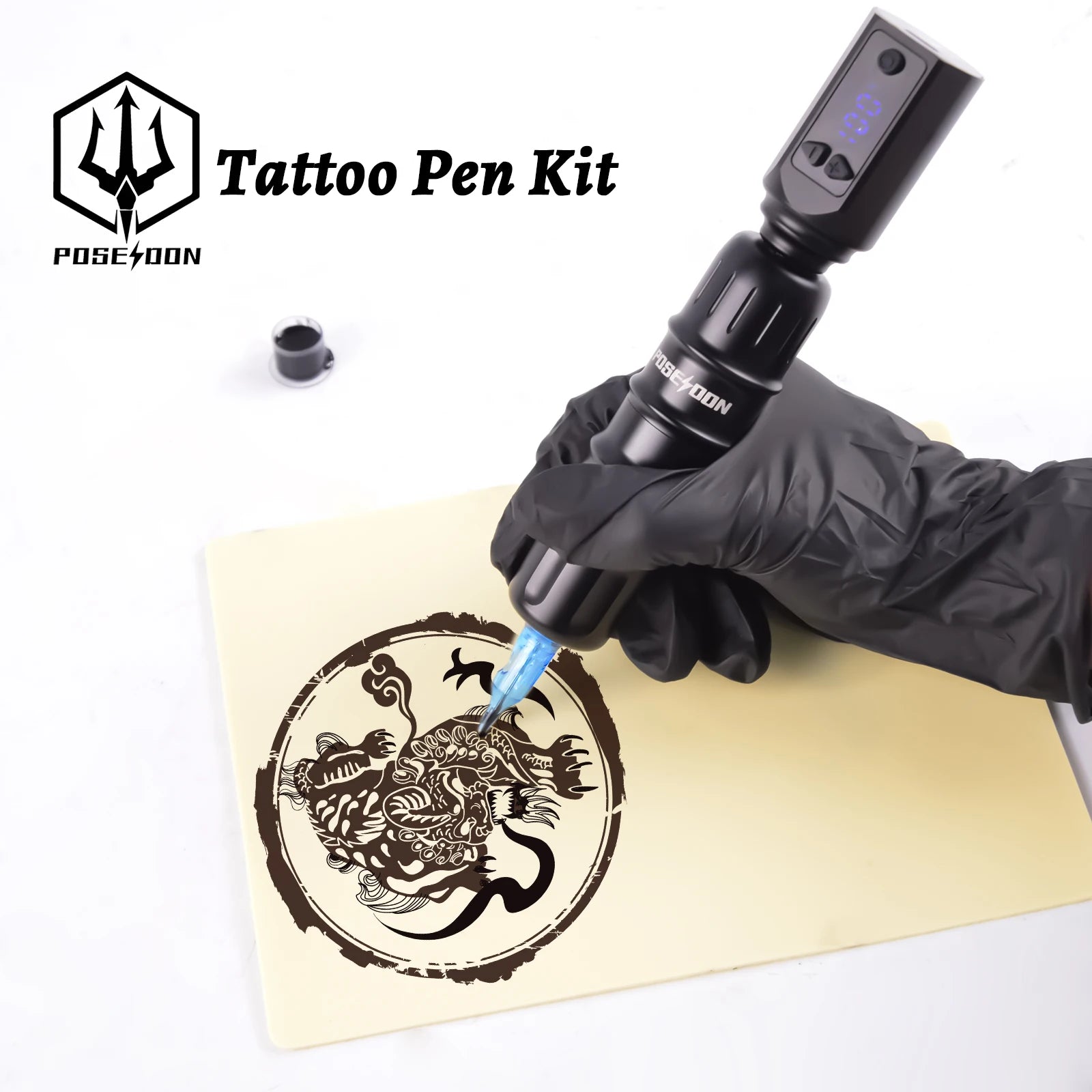 Tattoo Kit POSEIDON High Power Tattoo Pen Kit For Permanent Makeup Tattoo Machine Kit Black Wireless Tattoo Gun Kit