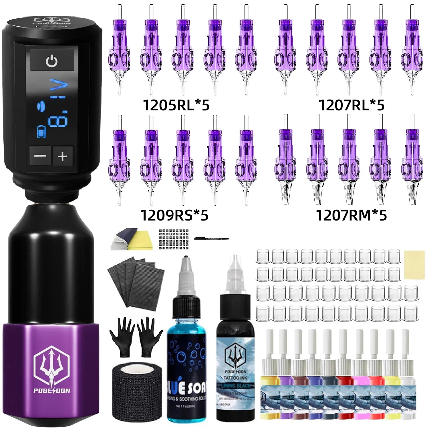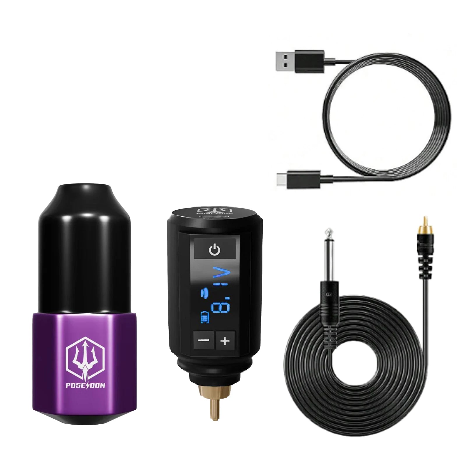 Tattoo Kit POSEIDON Lightweight Tattoo Pen Kit For Permanent Makeup Tattoo Machine Wireless Tattoo Power Supply Tattoo Gun Kit