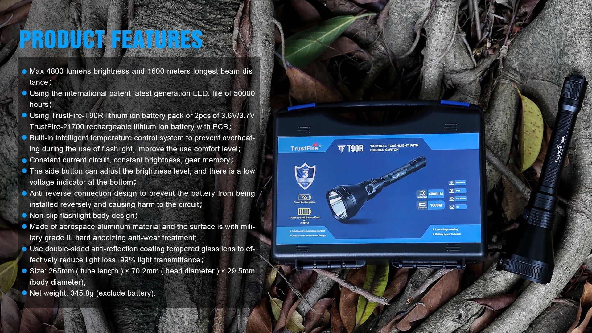 TrustFire T90R Self Defense Flashlight Powerful 4800Lm Long Distance