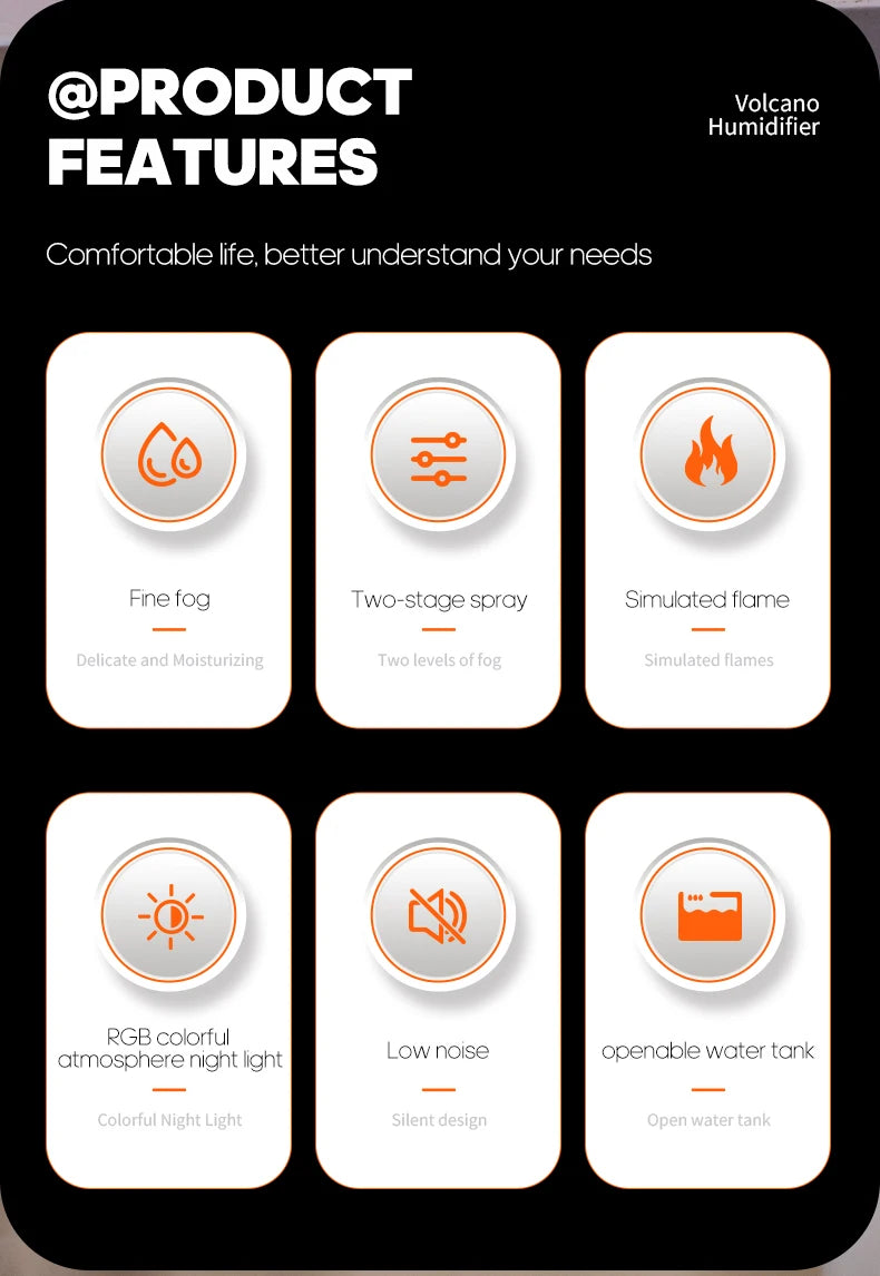 Volcano Air Humidifier 300ml Desktop USB Water Mist Diffuser Purifier Air Freshener Nebulizer with Colorful Ambient Night Light